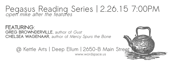Pegasus is a new monthly forum for poets and writers to showcase their work in the DFW area. Thank you to Kettle Arts for lending their space!